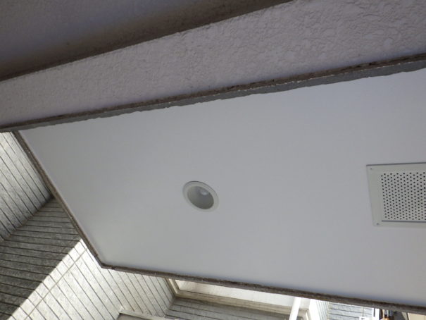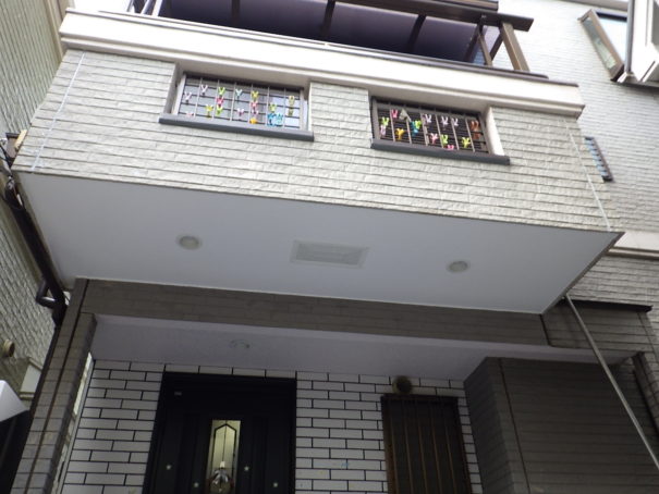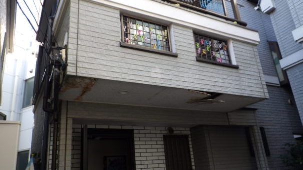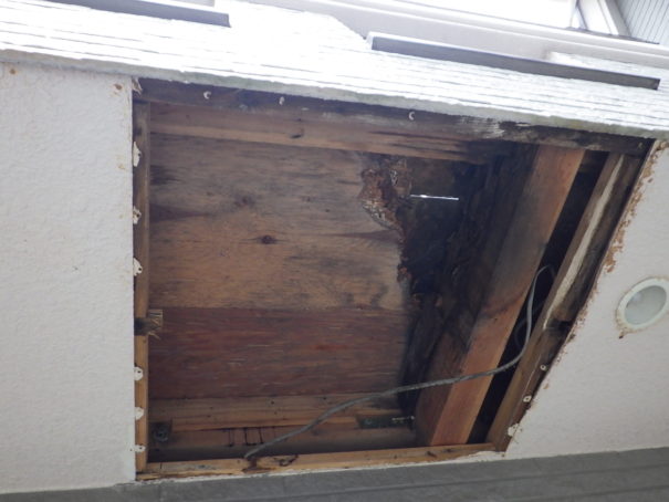 玄関上のバルコニーの防水が切れて床が腐食しています。